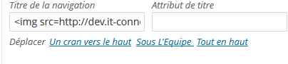On cliquera alors sur notre nouvel ajout dans le paramétrage du menu pour ajouter notre lien dans le champ "Titre de la navigation" sous la forme HTML :