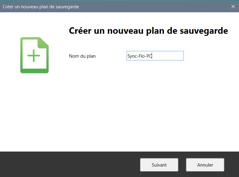 La source de la sauvegarde doit être sélectionnée, c'est-à-dire les éléments à sauvegarder/synchroniser.