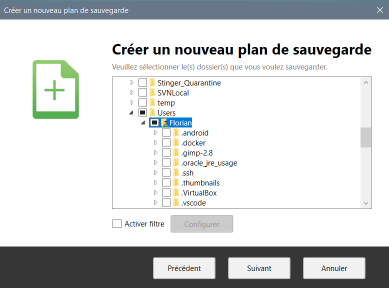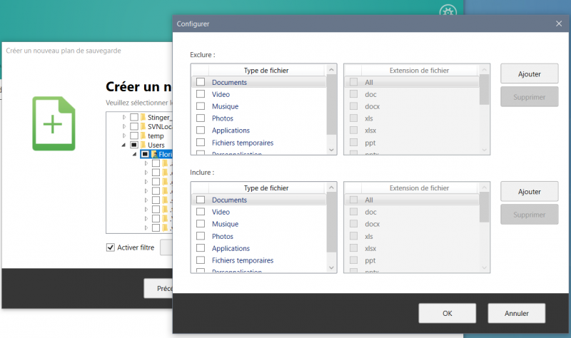 En cochant l'option "Activer filtre" vous aurez la possibilité d'indiquer quelles sont les extensions à inclure et à exclure. En fait, ça peut être utile si vous souhaitez exclure par exemple les fichiers temporaires.
