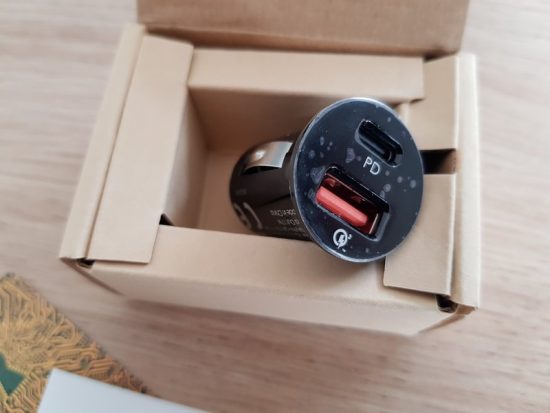Attention : il n'y a pas de câble fournit avec le chargeur, il faudra donc penser à en acheter un en supplément si vous souhaitez en avoir un sous la main dans la voiture... Aukey propose des câbles également, par exemple ce lot de câbles : https://amzn.to/2KkYxSl