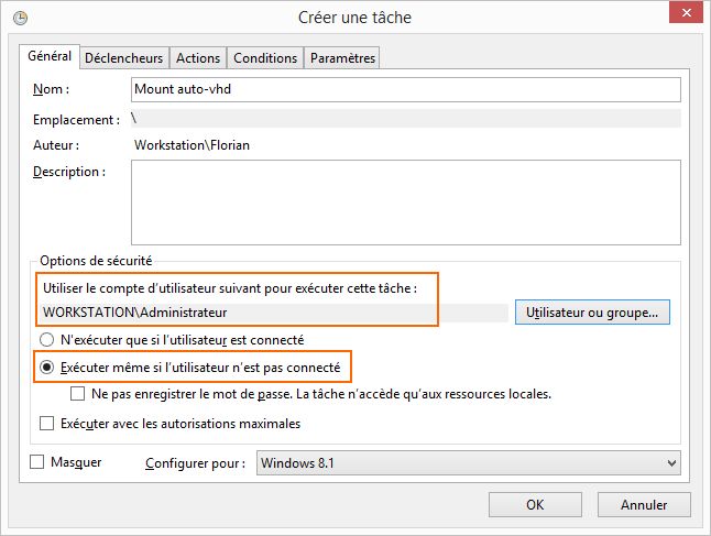 Validez la création de votre tâche planifiée, vous n'avez plus qu'à vérifier que votre disques durs virtuels sont bien montés automatiquement. Pour ceux qui souhaitent utiliser une autre méthode, il existe également l'utilitaire "VHD Attach" (à tester).