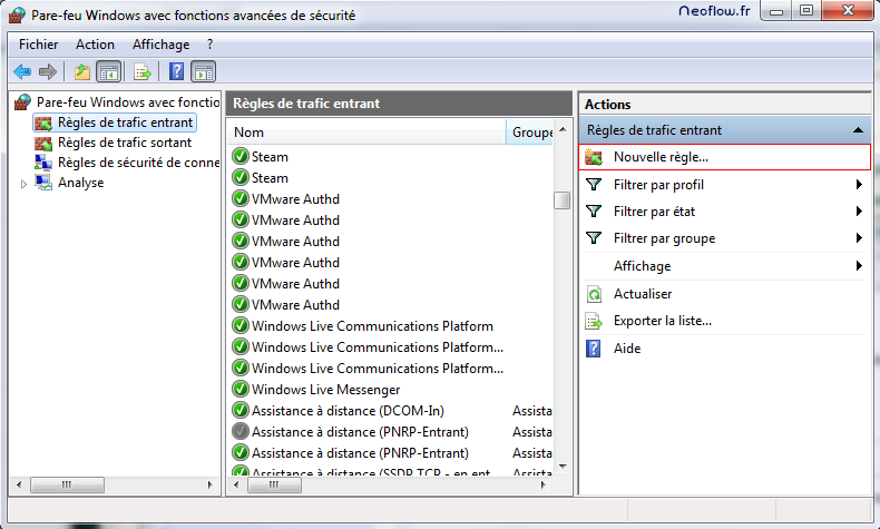 Il faut pour cela créer une nouvelle règle dans le pare-feu, voici comment faire :