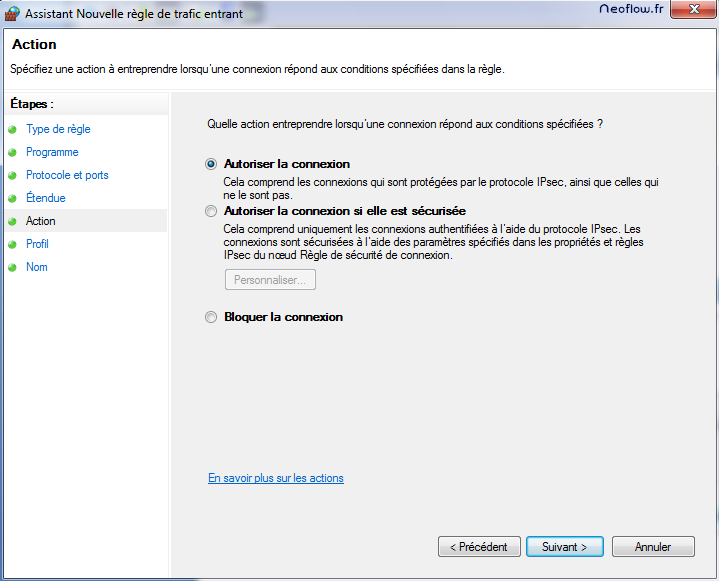 Choisissez « Autoriser la connexion » pour que le ping soit autorisé, ce qui est le but de ce tutoriel :