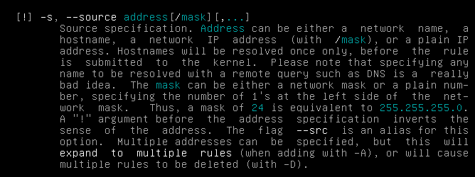 Une sécurité supplémentaire serait de n'autoriser les connexions SSH uniquement depuis une seul plage d'IP ou une seule IP. Pour avoir plus d'information sur le filtrage par IP source, on peut utiliser la page manuel d'iptables :