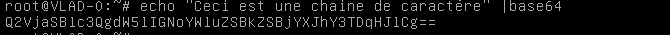 L'utilisation de la commande base64 pour à la fois encoder et décoder du base64 est assez simple. Si nous avons un chaine que nous souhaitons encoder en base64 par exemple nous utiliserons la commande comme suivant :