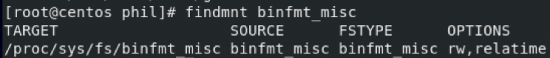 # grep /binfmt /proc/mounts binfmt_misc /proc/sys/fs/binfmt_misc binfmt_misc rw,relatime 0 0