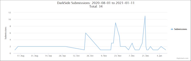 DarkSide a déjà permis à ses auteurs de gagner des millions de dollars depuis sa mise en service en août 2020. Néanmoins, son activité devrait prendre du plomb dans l'aile suite à l'annonce de Bitdefender. Pourtant, d'après le rapport quant aux échantillons testés par le site ID-Ransomware, l'activité de DarkSide a largement augmenté entre octobre et décembre 2020.