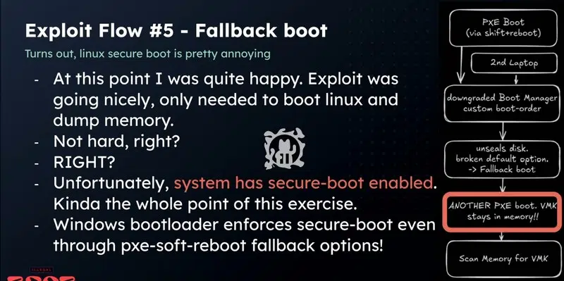 Cette attaque repose sur une vulnérabilité logicielle nommée "bitpixie" et associée à la référence CVE-2023-21563. "Nous exploiterons une vulnérabilité logicielle peu connue que Microsoft a été incapable de corriger depuis 2022 : bitpixie (CVE-2023-21563).", précise le chercheur en sécurité. Bien que cette faille de sécurité soit « corrigée » depuis novembre 2022 et connue publiquement depuis 2023, elle reste exploitable grâce à une attaque par repli (downgrade attack).