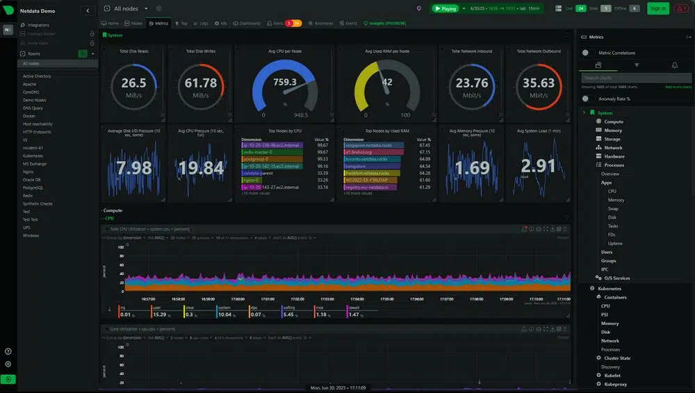 Netdata est un outil de monitoring en temps réel conçu pour offrir une visibilité immédiate et granulaire sur les performances de vos systèmes. On parle alors d'observabilité. Il adopte une approche Zero Config pour faciliter la découverte des services et collecte de nombreuses métriques, présentées dans des graphiques interactifs (et une superbe interface). Il vous permet de mieux comprendre vos systèmes.