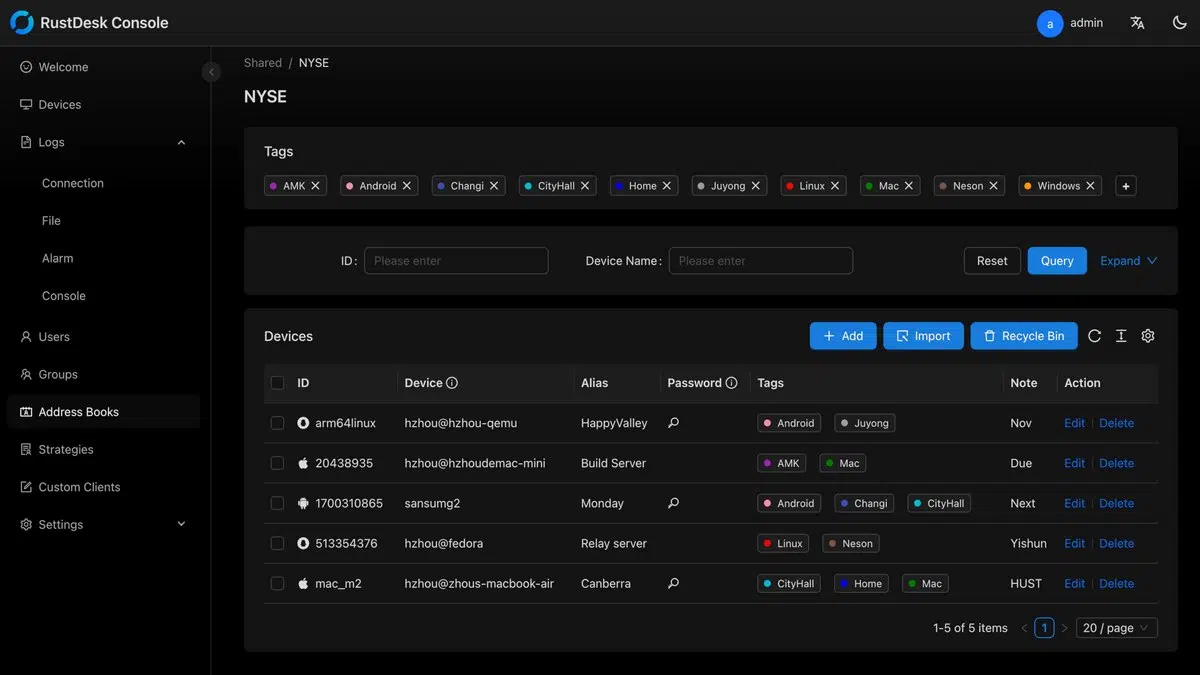 RustDesk est une solution de prise en main à distance open source codée en Rust. Vous l'aurez compris, c'est une alternative à TeamViewer ou AnyDesk. Sa particularité, c'est qu'il vous permet d'héberger votre propre serveur relais (Rendezvous Server), pour une meilleure confidentialité et surtout sans dépendre d'un tiers. Côté sécurité, les connexions sont chiffrées de bout en bout, garantissant la sécurité des sessions.