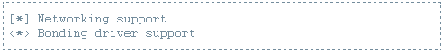 Afin de mettre cette technique en œuvre, outre le fait de disposer de deux interfaces minimum, nous devons aussi vérifier quelques petites choses concernant le système d’exploitation. Il est notamment nécessaire d’avoir activé l’option bonding au niveau du noyau :