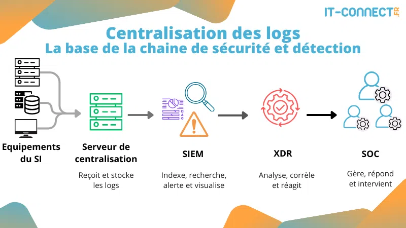 Une fois que nos évènements de sécurité sont bien générés et stockés en local sur chacun des systèmes, nous pouvons passer à la phase de centralisation.