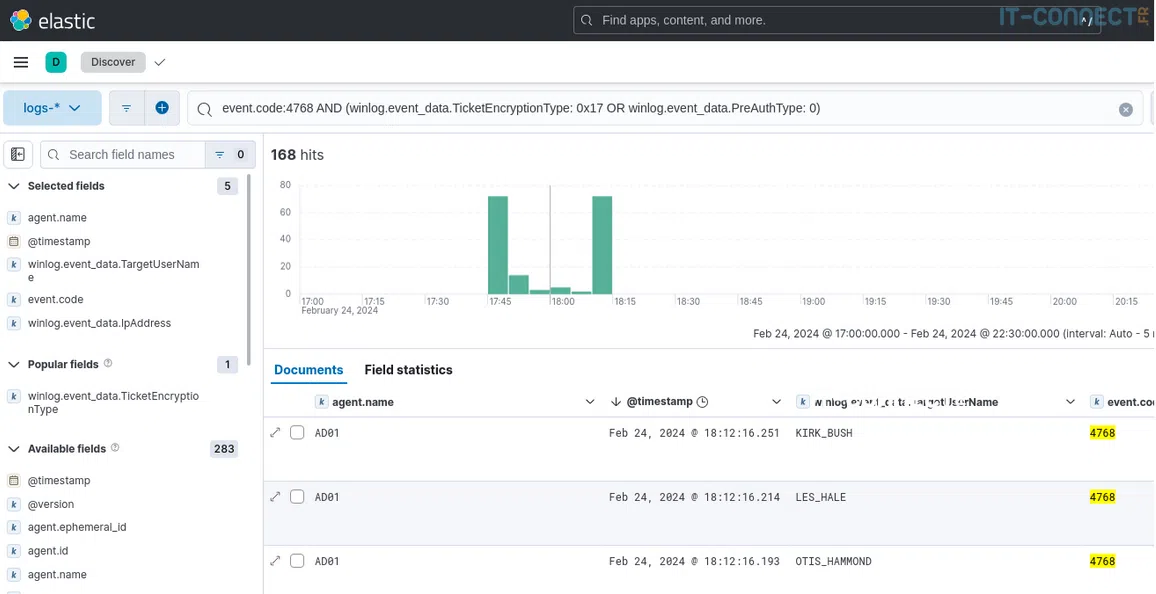 - IT-Connect.fr - Investiguer sur une attaque Kerberoasting via ELK – Hack The Box Sherlocks : Campfire-1