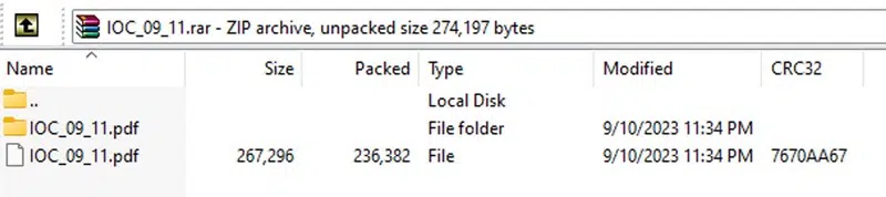 L'entreprise Cluster25 a publié un nouveau rapport qui évoque cette campagne de phishing : "L'attaque implique l'utilisation de fichiers d'archive malveillants qui exploitent la vulnérabilité récemment découverte affectant le logiciel de compression WinRAR dans les versions antérieures à la version 6.23 et répertoriée sous le nom de CVE-2023-38831."