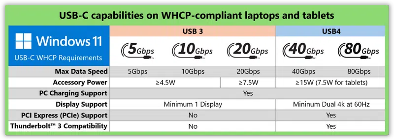 Pour améliorer la situation, Microsoft mise sur une évolution de son Windows Hardware Compatibility Program (WHCP). L’objectif est le suivant : imposer des spécifications minimales pour tous les ports USB-C des PC sous Windows 11. Ceci devrait permettre de clarifier la situation.