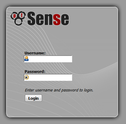 Le mot de passe d'un utilisateur ne peut se modifier que depuis le webConfigurator (l'interface Web de PfSense). Il faut donc s'y rendre et se connecter avec un utilisateur ayant les droits d'administration (idéalement l'utilisateur administrateur par défaut "admin") :