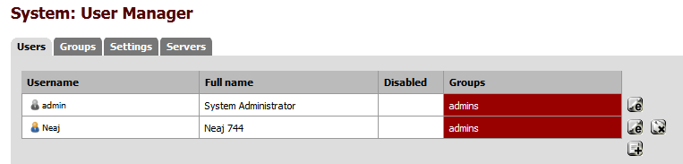 On s'authentifie donc puis on se rend dans "System" > "User Manager" pour aller modifier les informations des utilisateurs :