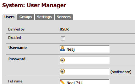 Dans ce tutoriel, nous allons apprendre à changer le mot de passe d'un utilisateur (normal ou d'un utilisateur "admin"). Pour information, ce tutoriel est effectué sur la version 2.0.3 RELEASE (i386) de PfSense et la machine est une machine virtuelle sous VirtualBox.