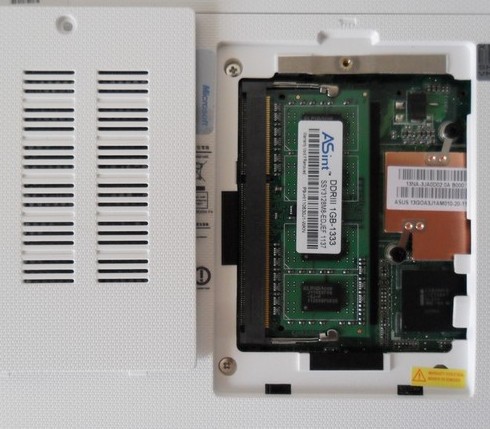 Étant donné que nous faisons cela sur un Netbook, il y a un seul emplacement (aussi appelé slot) pour barrette mémoire, si vous avez un PC Portable classique vous en aurez plusieurs.