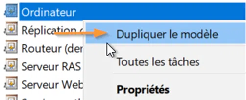 Nous allons nous appuyer sur le modèle "Ordinateur". Faites un clic droit sur ce modèle prédéfini et choisissez "Dupliquer le modèle".