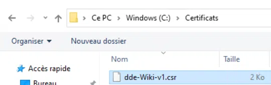 À partir de ce fichier, nous allons générer le fichier de requête (CSR).