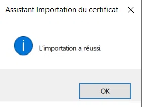 L'import se termine avec succès ! Le certificat est bien rattaché à la clé privée stockée en local.
