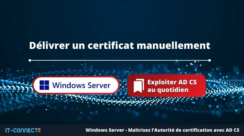 Ce chapitre explique comment délivrer un certificat manuellement à partir d'une autorité AD CS, en abordant plusieurs méthodes (console MMC, fichier CSR, PowerShell, etc.).