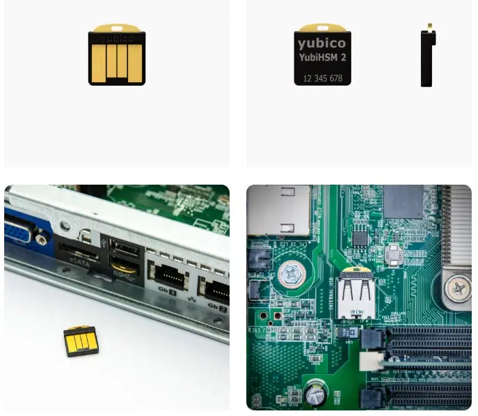 Par ailleurs, le format « Nano » évite d'avoir à insérer une carte additionnelle dans le serveur. Si un port USB est présent sur la carte mère, il est alors possible que la YubiHSM soit protégée à l'intérieur de la machine.