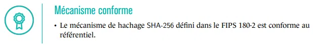 Cela nous renseigne sur le fait que la fonction de hachage doit s'appuyer sur 256 bits, et ailleurs vous trouverez les algorithmes qui peuvent être utilisés. Ainsi, l'utilisation de SHA256 est conforme.