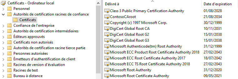 Ces CA sont intégrées aux magasins de certificats des systèmes comme Windows, macOS, iOS, Android et des principaux navigateurs populaires, garantissant la confiance de leurs certificats sans configuration supplémentaire. Autrement dit, cela permet la vérification de la chaine de confiance.