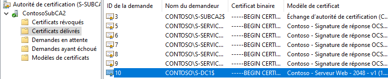 La révocation d'un certificat fait partie du cycle de vie d'un certificat. D'autres tâches d'administration sont accessibles via les rubriques "Demandes ayant échoué ou Demandes en attente", aussi il sera intéressant de parcourir ces emplacements.