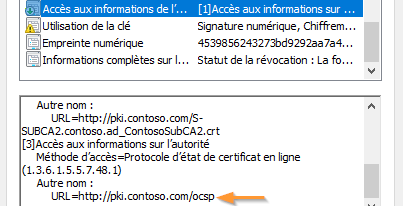 Le chemin du service OCSP est quant à lui visible sous "Accès aux informations sur l’autorité" :