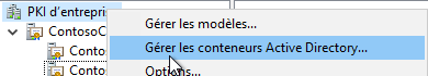 De plus, avec cette console PKIView, il vous sera possible de gérer l'inscription des objets dans l'Active Directory. Il faut pour cela réaliser un clic-droit à la racine de la console et choisir "Gérer les conteneurs Active Directory".