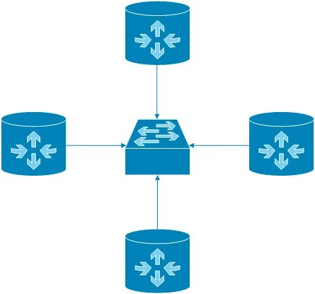 En effet, ici, nous sommes bien en point à point (R1 et directement relié à R2, sans rien d'autre), donc le paquet ne peut aller qu'à un seul endroit. Néanmoins, ce n'est pas toujours le cas. Il peut y avoir des occasions ou les routeurs sont connectés à des switchs, on parle alors de réseau multi-accès. Ça ressemble à ceci :