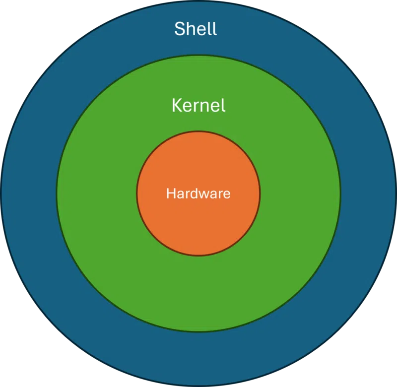 - Le shell (coquille) qui est la partie de code chargée de fournir une interface utilisateur.