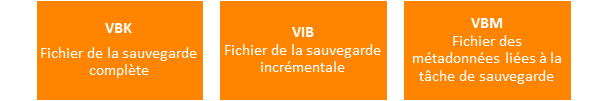 Lors de la première exécution, un fichier de sauvegarde VBK est créé, pour les prochaines exécutions ce sera un fichier de sauvegarde VIB qui sera créé, et qui est directement lié au fichier VBK. D’ailleurs, les informations liées au job sont stockées dans le fichier VBM, qui contient notamment les liens entre les différents fichiers de sauvegarde.