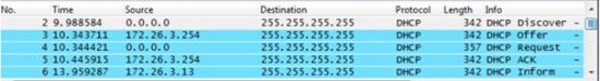 Il est possible de mettre en évidence, facilement ce processus DORA, en effectuant une analyse des trames réseau circulant durant les échanges entre le client et son serveur DHCP :