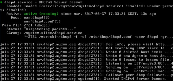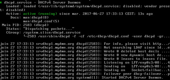 A ce stade, on peut alors démarrer le service dhcpd sur les deux machines maître et esclave en exécutant les commandes suivantes :