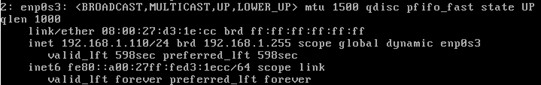 Mais, une fois la configuration de notre carte hôte (ici, il s’agit de VirtualBox) en lui précisant l’adresse IP de notre serveur DHCP maître et de la plage d’adresses,, on constate qu’au démarrage du réseau sur le client, on dispose alors de la configuration réseau suivante :