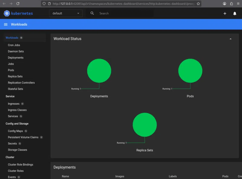 Cette commande ouvre une interface web locale dans le navigateur, qui se connecte directement à l’API du cluster.
