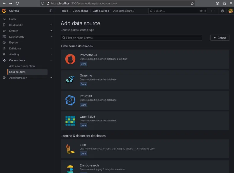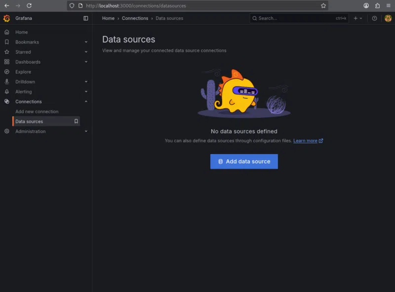1. Nous cliquons sur « Connections » puis sur « Data sources ».