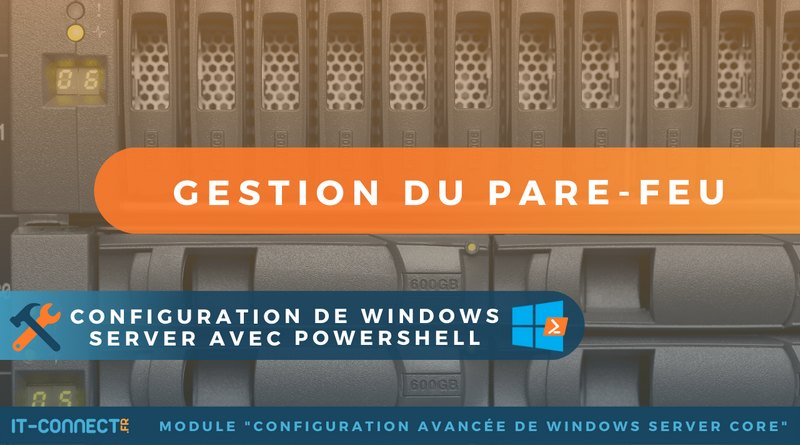 Depuis Windows Server 2012 et Windows 8, Microsoft a intégré à PowerShell des commandes qui permettent de gérer le Pare-feu Windows. À terme, l'objectif de ces commandes c'est de remplacer les commandes « netsh firewall » et « netsh advfirewall » même si aujourd'hui, sous Windows Server 2022, ces commandes sont toujours disponibles. En ce qui nous concerne, nous allons utiliser exclusivement PowerShell pour configurer le pare-feu de notre serveur Windows.