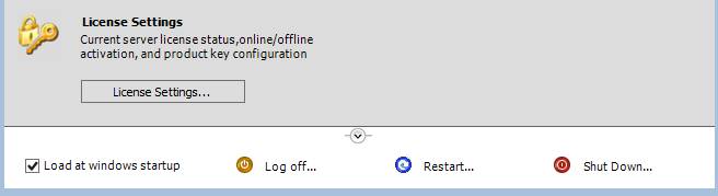 Si vous souhaitez faire de « Corefig » un outil essentiel dans la gestion de votre serveur Core, vous pouvez lui dire de s’exécuter automatiquement au démarrage du serveur. Pour cela, cliquez sur la flèche centrale dans le bas de l’interface, et ensuite activez l’option « Load at Windows startup », comme ceci :