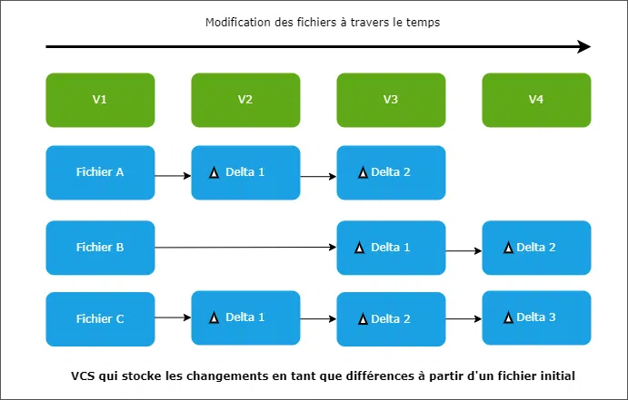 Cette approche axée sur le delta ou « différence » (delta-based version control) peut être illustrée ainsi :