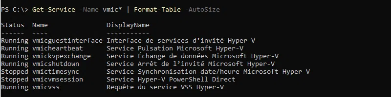 Get-VMIntegrationService -VMName "<Nom de la VM>"