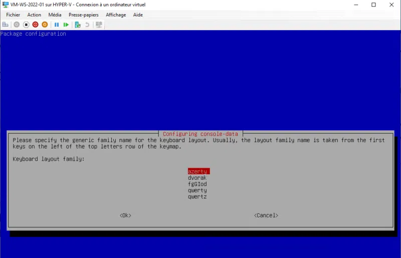 Commencez par sélectionner l'option "Select keymap from arch list" et appuyez sur Entrée. Ceci vous permettra de choisir un clavier "azerty" ou "qwerty" selon vos habitudes. Ensuite, il conviendra de spécifier la langue à utiliser.