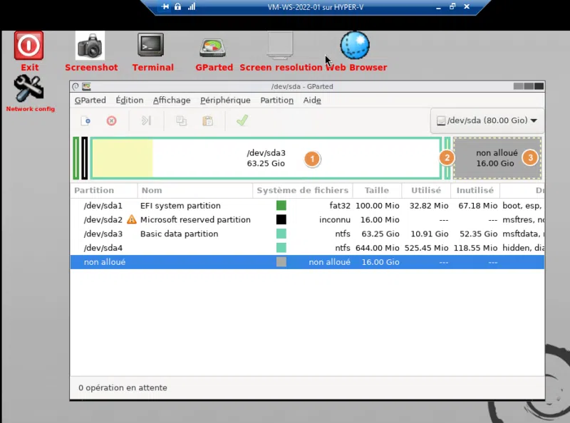 Tout s’est bien déroulé, et la taille des partitions a bien été modifiée.