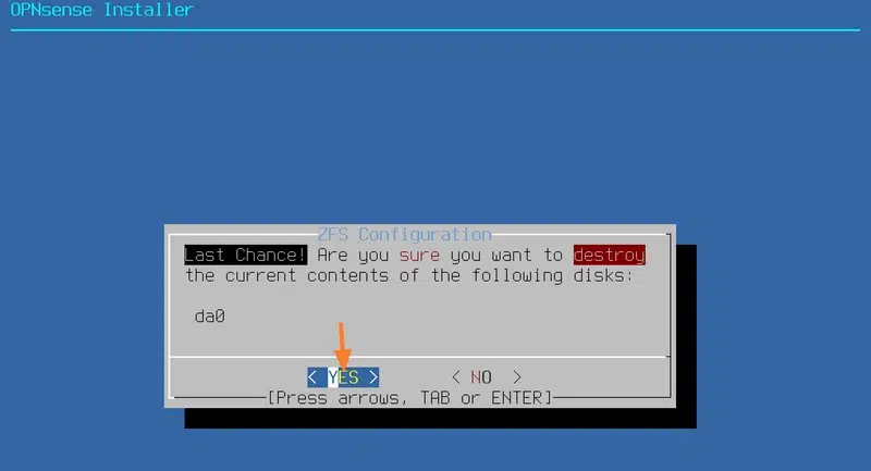 Enfin, validez en sélectionnant "YES" puis avec la touche Entrée.