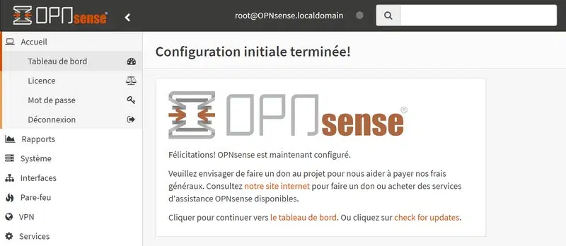 La bonne nouvelle, c'est que désormais, nous pouvons accéder à l'interface d'administration d'OPNsense à partir du LAN.