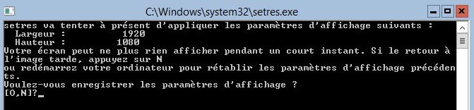 Vous serez invité à valider le changement de résolution, si vous souhaitez forcer la validation sans le faire manuellement, ajoutez l’option « -force » à la commande indiquée ci-dessus.
